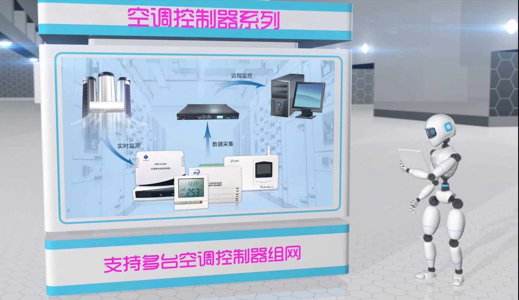 目前我公司有多種空調型號,485 型、IP網絡型、空調小管家、空調切換控制器、中央空調控制器等多種品牌型號的空調控制器,適用于目前市面上絕大部分品牌的柜式機、分體壁掛機、吸頂式的民用商用空調及中央空調。對空調進行遠程控制,同時具備來電自啟動,定時、定溫開關機、通過集中監控系統,可對多臺空調進行網絡控制、節能控制、集中管理。